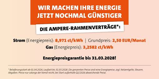 Der Ampere-Tipp: Lassen Sie ihren aktuellen Vertrag professionell und kostenlos prüfen. Ein Wechsel kann je nach Verbrauch mehrere Hundert Euro pro Jahr sparen.